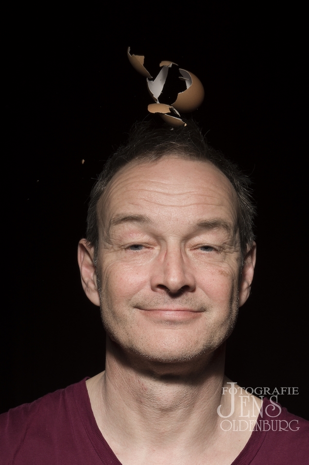 Die zwei Blitzköpfe lösten mit 1/5000tel Sekunde aus und es wurde eine "Eier-Abwurfmaschine" konzipiert.