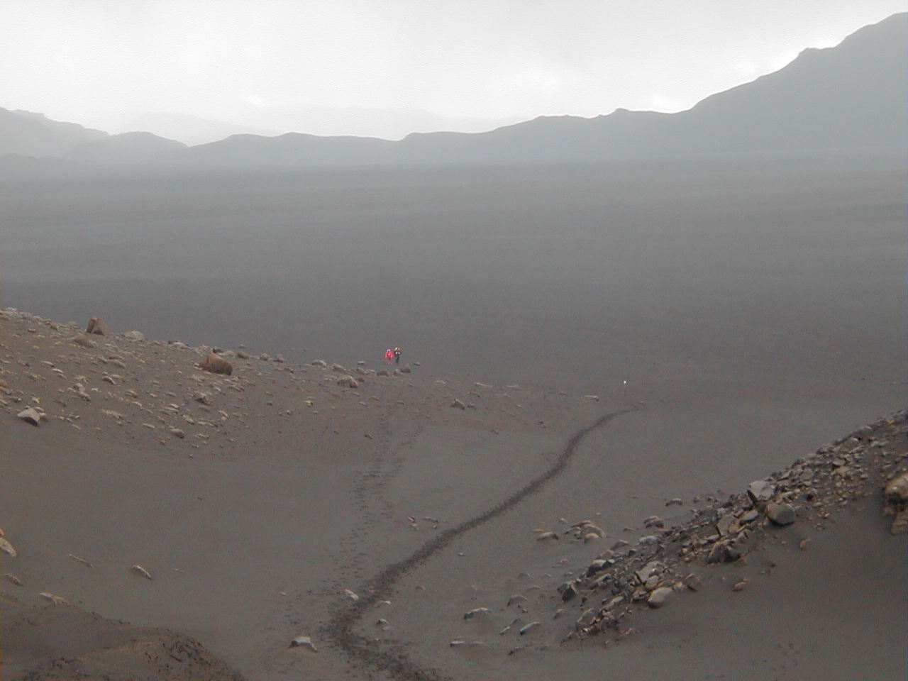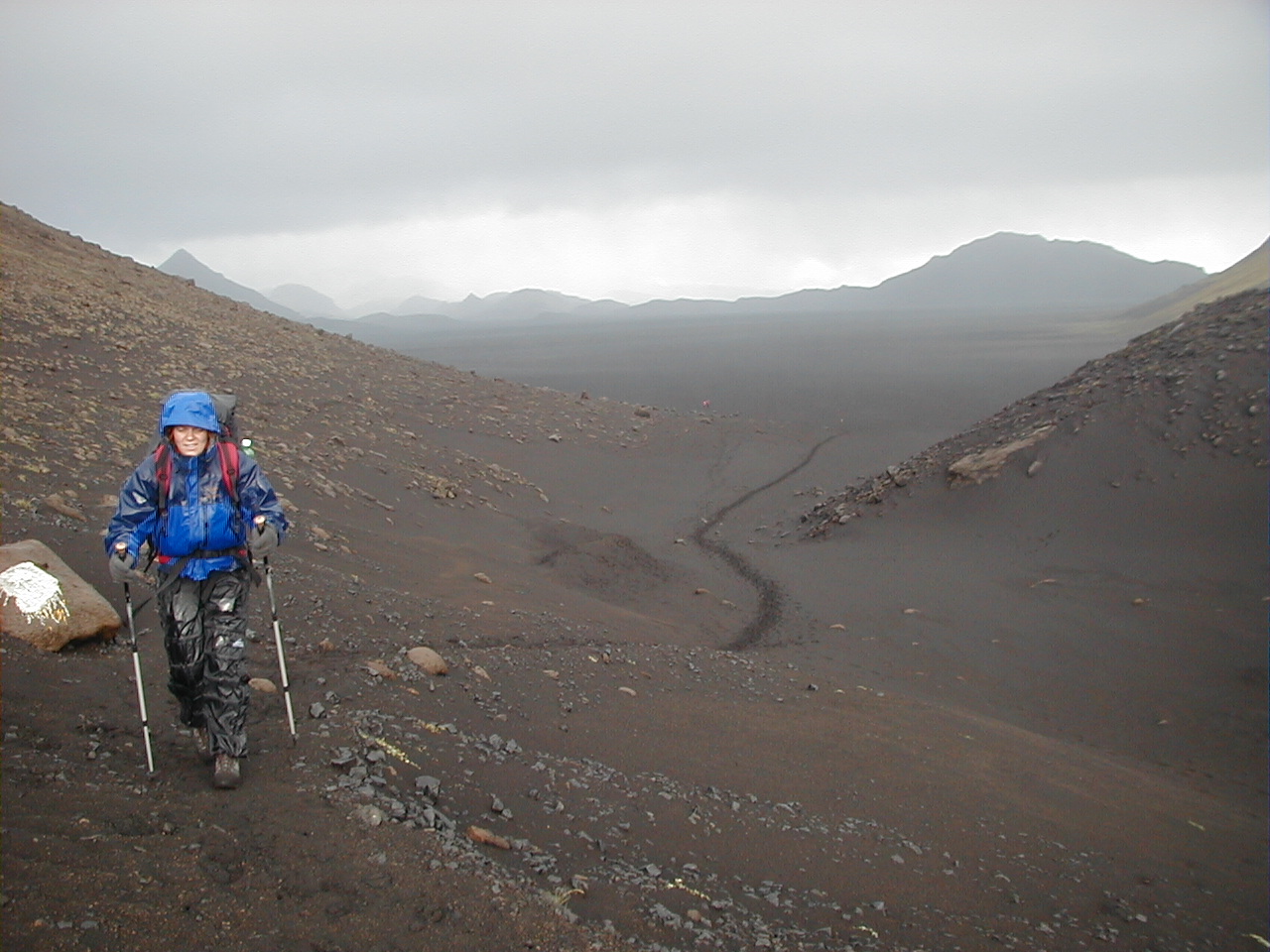 Wir hatten viel Wasser von oben, weil der Regen einfach nicht aufhören wollte und viel Wasser von unten, weil wir die Flüsse queren mussten. Nach dem letzten Fluss standen wir vor einer Aschewüste. Der Weg zur Botnaà-Hütte führt dort durch. Eine gefühlt endlose Wüste mit viel Regen und einem ständigen starken Wind.